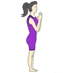 Partiamo da Tãdãsana ed inspirando solleviamo le braccia lateralmente, uniamo le mani sopra il capo e le portiamo in Namasté di fronte al petto. Gli avambracci sono sulla stessa linea e paralleli a terra.(Pranamãsana)
